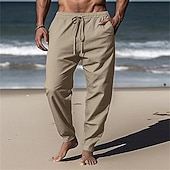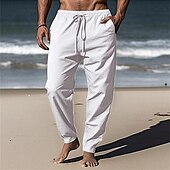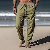 More information about Men's Linen Pants Trousers Summer Pants Beach Pants Pocket Drawstring Elastic Waist Plain Comfort Breathable Daily Holiday Vacation Hawaiian Boho White Green