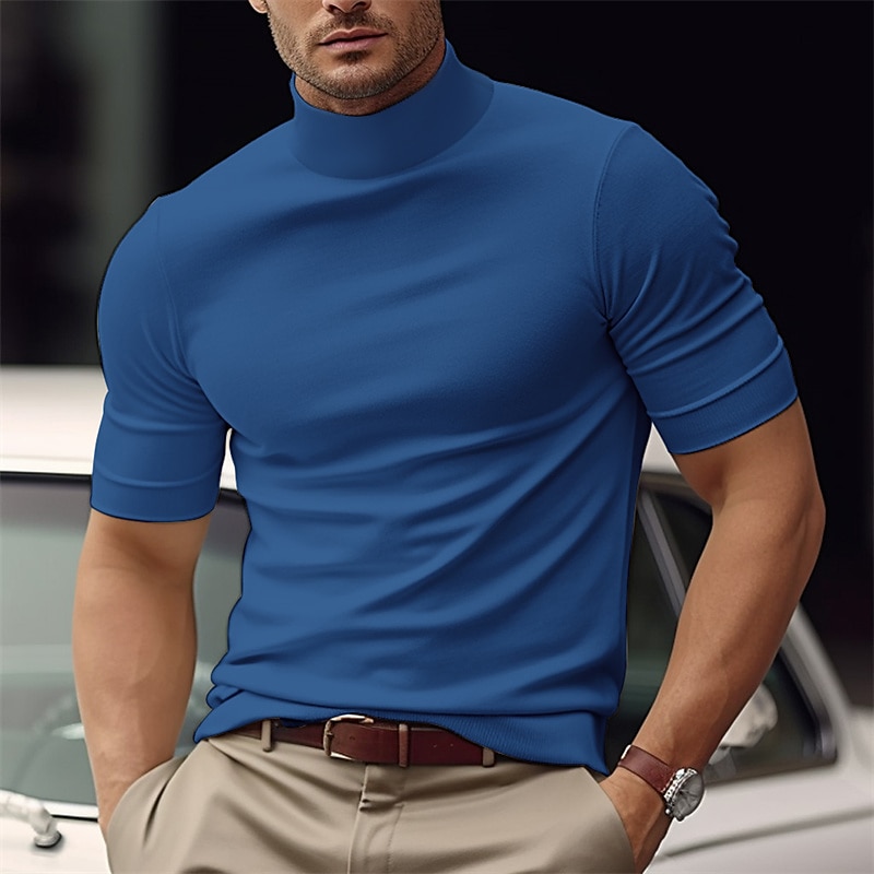 This Men's T Shirt Tee Top Mock Turtleneck Short Sleeves Turtleneck Summer Plain Fashion Designer Basic Vacation Street Going out Black White Blue Top Tee for Men combines elegant design with practical functionality. Every detail has been carefully considered to ensure you get the foremost possible experience. The premium construction means this product will serve you well for years to come.
