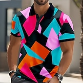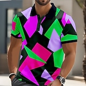 sought-after ! Men's Geometric Abstract Polo Short Sleeve Polo Shirts Collared Shirts Casual Street Athleisure Daily Wear 3D Print Buttons Summer Pink Blue Purple
