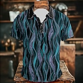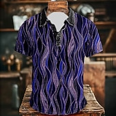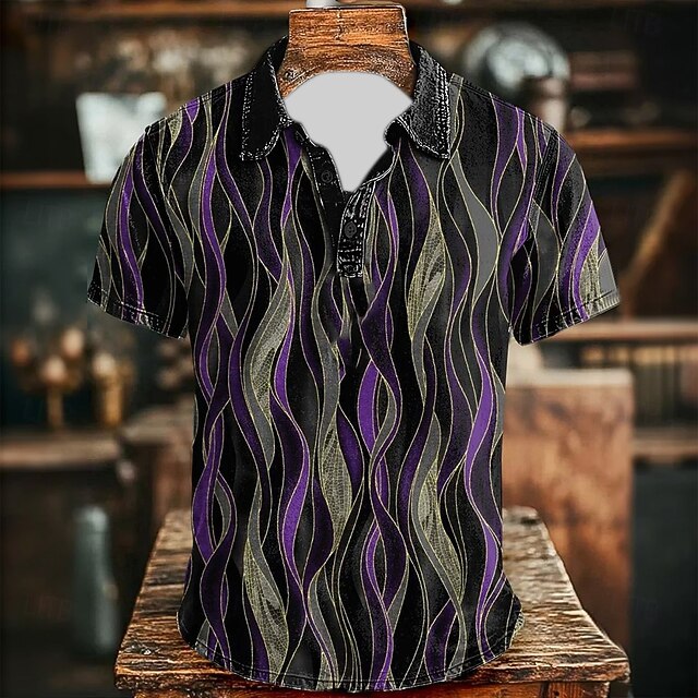 More information about Men's Line Polo Short Sleeve Polo Shirts Collared Shirts Casual Athleisure Daily Wear 3D Print Buttons Summer Blue Purple Gray