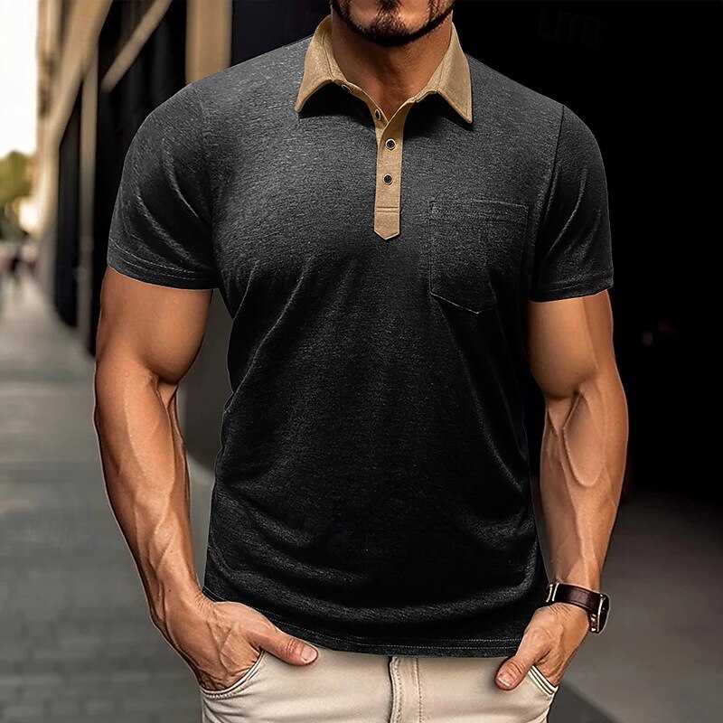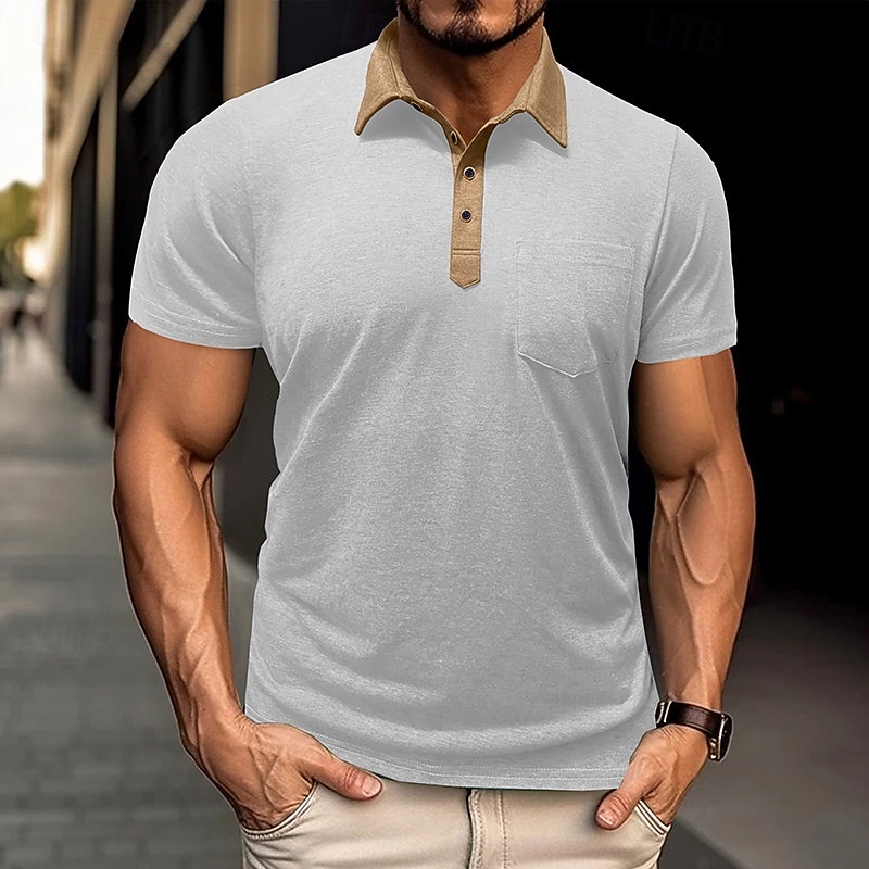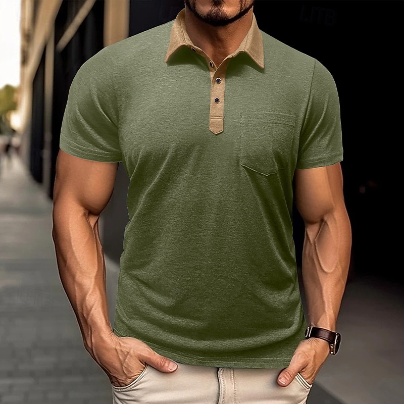 More information about Men's Polo Shirts Golf Shirt Casual Sports traditional Short Sleeve Fashion Cool Color Block Pocket Buttons Summer Spring & Fall Regular Fit Black White Burgundy Navy Blue Light Grey Khaki Polo Shirts