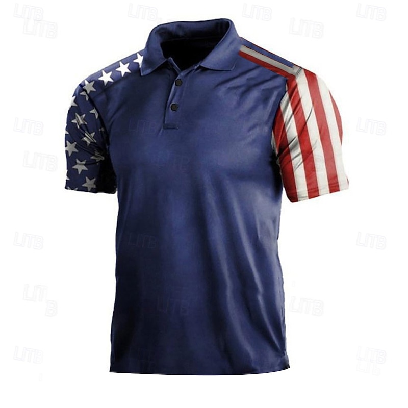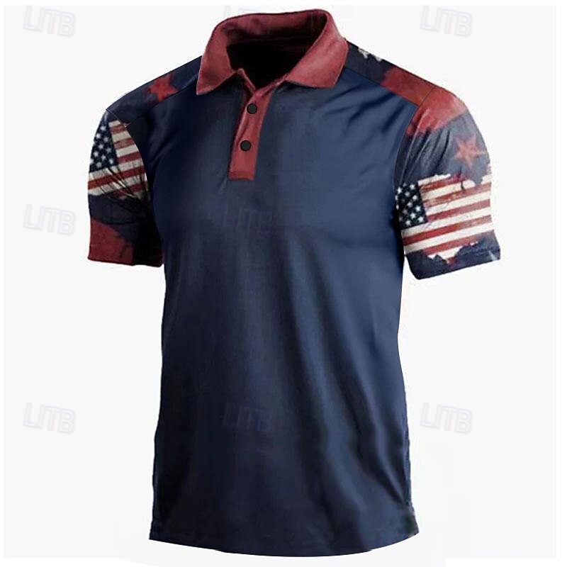 sought-after ! Men's American Flag Veterans Polo Shirts Golf Shirt Short Sleeve Polo Shirts Collared Shirts Casual Streetwear Vacation Wear Party Outfits 3D Print Buttons White & Blue White Navy Blue