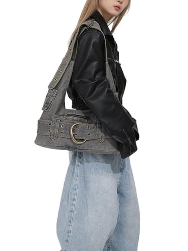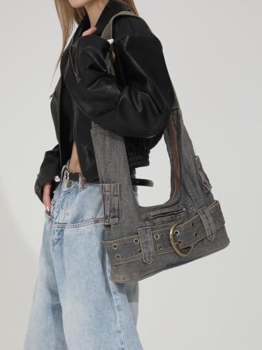 sought-after ! Denim Hobo Bag Trashy Y2k Shoulder Purse Retro Denim Crossbody Bags Handbag Acubi Bags Punk Y2k Stuff