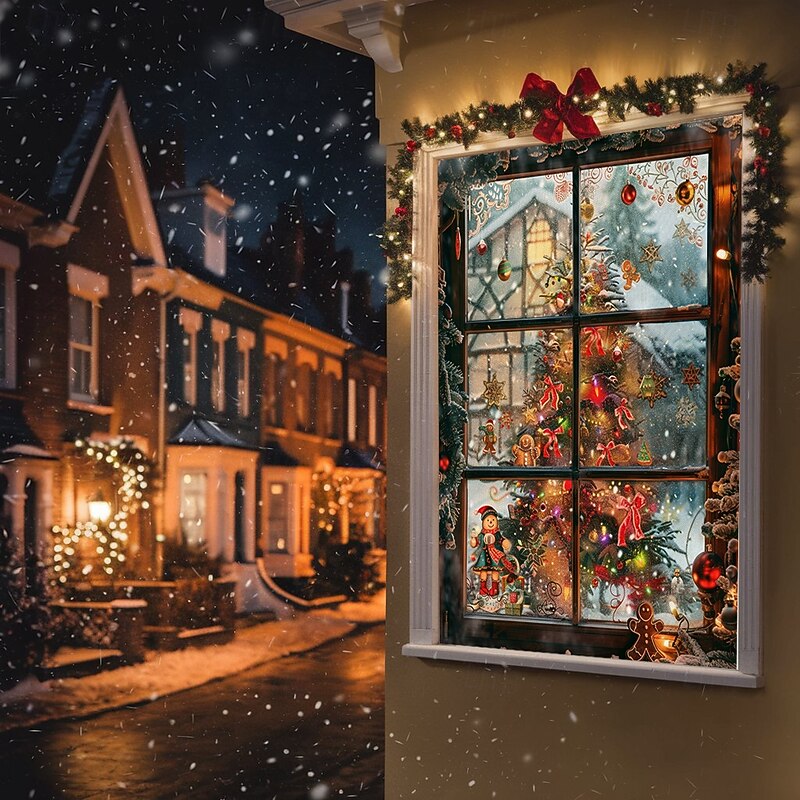 Why Choose Christmas Window Cover Decorations, Fabric Gingerbread check out Curtain Movie Poster Window Door Covering Decor for Christmas House, Window Clings Decals Indoor Outdoor?