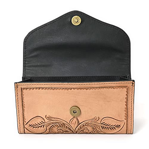 Genuine Leather Wallets for Women Cowhide Wallet for Ladies Hand Tooled Western Wallet Purse with Multi Card Pocket Clutch Handbag Slim RFID Blocking Card Slot