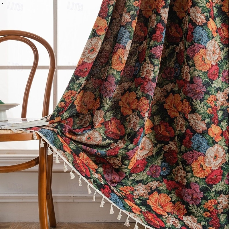 sought-after ! Jacquard Curtains 1 Panel with Tassels for Bedroom Living Room Windows Thermal Insulated Room Darkening Rod Pocket Curtains