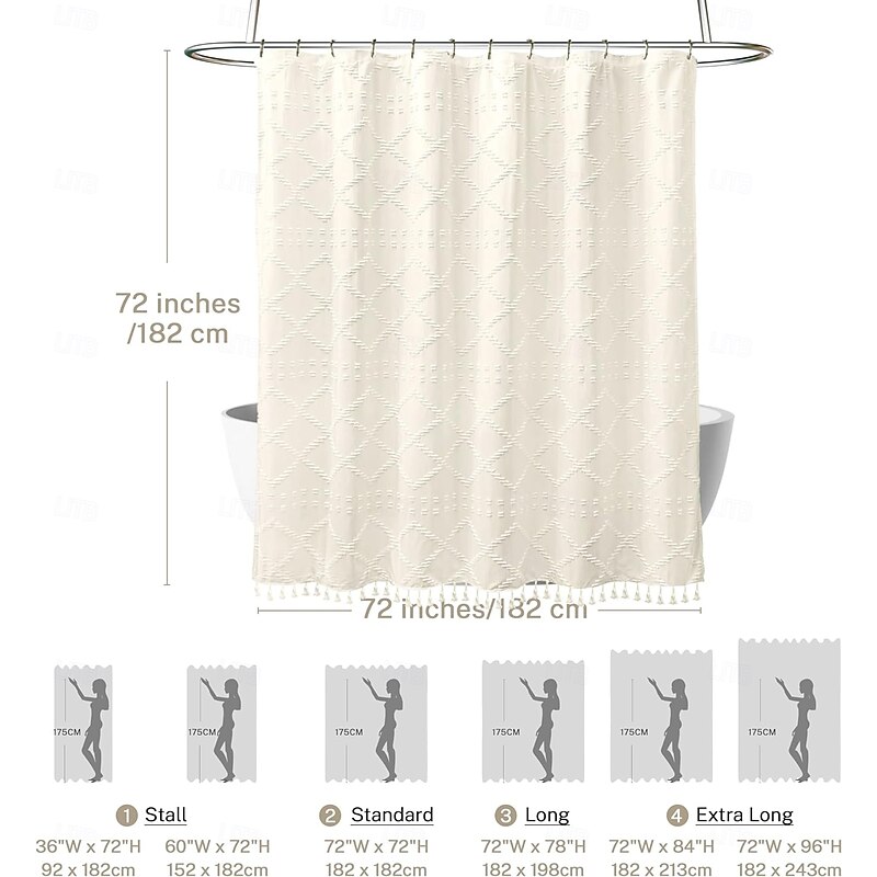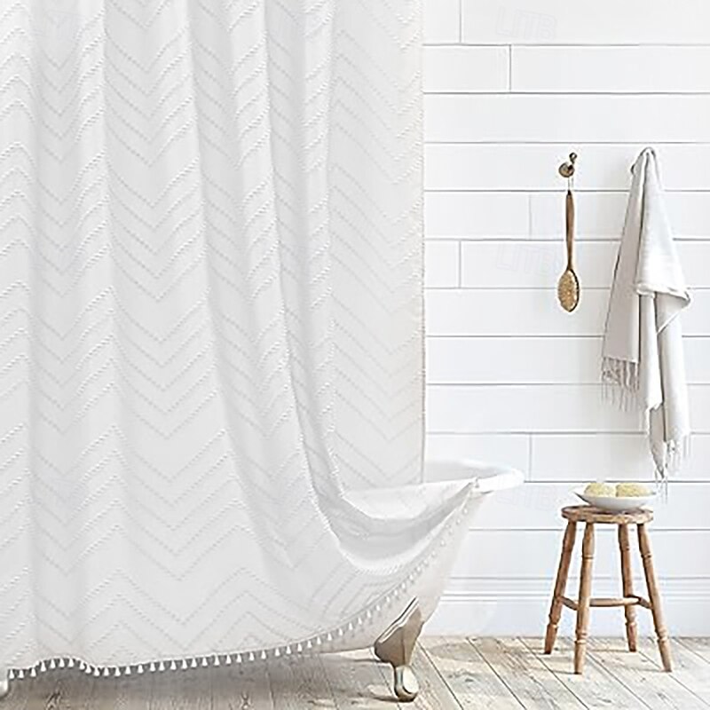 $30.99 - Boho White Woven Fabric Shower Curtain with Tassel 180cm 70" Modern Farmhouse Minimalist, Tufted Chevron Striped Shabby Chic Textured, Water Resistant Cloth Curtain for Bathroom, Hotel Decor 2025. Shop for cheap Shower Curtains online? Buy at lightinthebox.com on sale today!