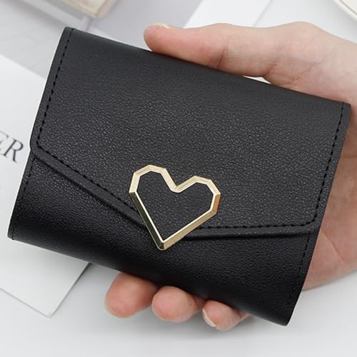 sought-after ! Short Wallet for Women PU Leather Coin Purse Portable Card Slots Change Pocket Suitable for Various Uses, app. 11.5x2x9cm /4.52x0.78x3.54in, Black