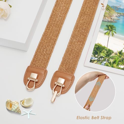 • Boho Skinny Belt:Elastic woven belt are exceptionally suitable for matching dresses, short skirts, linen pants, sweaters, coats and so on. Whether you wear it everyday or travel, brown straw woven belts are superb accessories. Especially suitable for summer travel.