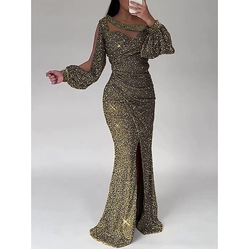 This Mermaid Sequin Evening Gown Party Dress Formal Sweep / Brush Train Long Sleeve Scoop Neck with Glitter Ruched Slit Masquerade Dress combines elegant design with practical functionality. Every detail has been carefully considered to ensure you get the foremost possible experience. The premium construction means this product will serve you well for years to come.