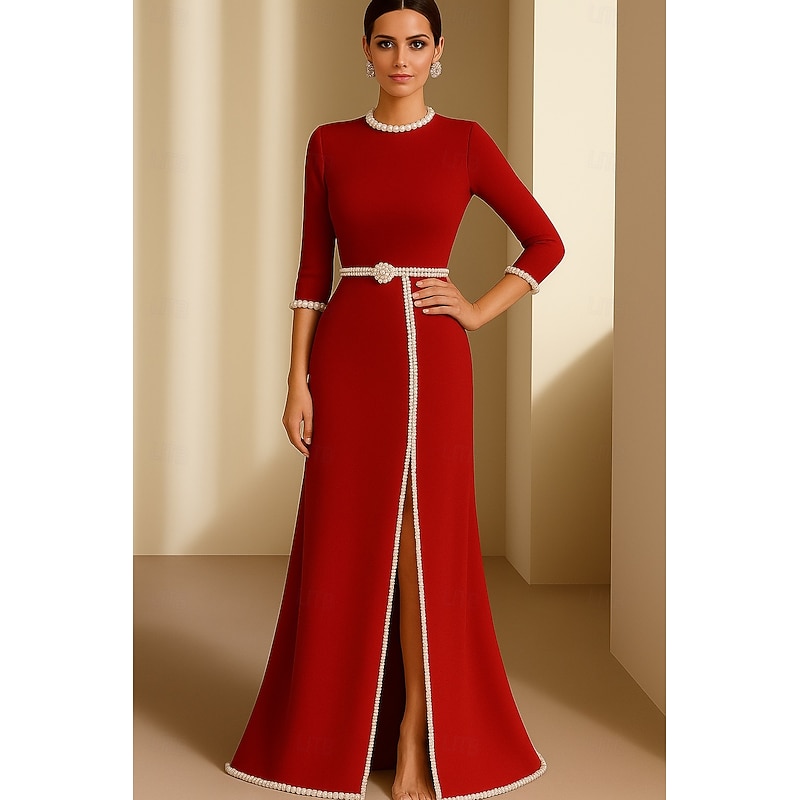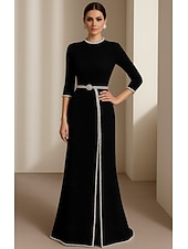$159.99 - Black Tie Sheath / Column Evening Gown Elegant Formal Dress Formal Wedding Floor Length 3/4 Length Sleeve Crew Neck Stretch Crepe with Pearls 2025 2025. Shop for cheap Sheath Evening Dresses online? Buy at lightinthebox.com on sale today!