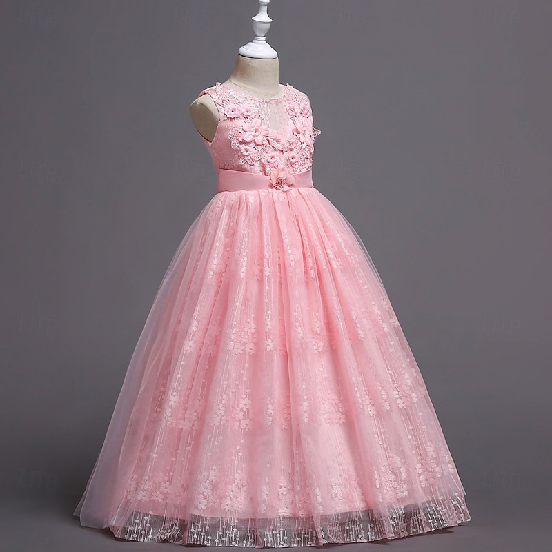 sought-after ! Kids Girls' Dress Solid Color Flower Sleeveless Party Pegeant Princess Sweet Cotton Party Dress A Line Dress Summer Spring 4-13 Years Pink Navy Blue Purple