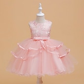 Why Choose Kids Girls' Party Dress Graphic Flower Sleeveless Special Occasion Princess Polyester Party Dress Summer Spring 4 years+ Multicolor Champagne Pink?