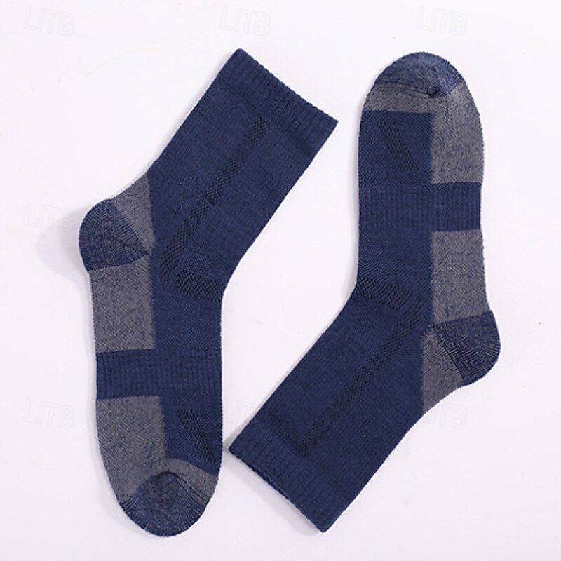 1 Pair Women's merino wool socks Running Socks Sports Socks Thermal Warm Breathable Anti Blister Thick Outdoor quarter crew Patchwork Merino Wool Black White Royal Blue for Ski / Snowboard Running 5