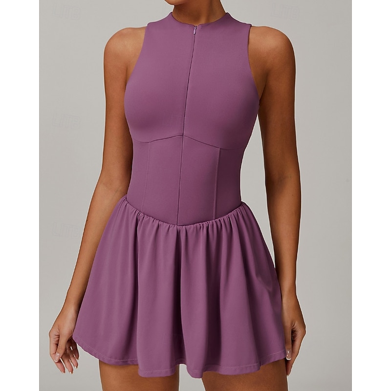 $49.99 - Women's Solid Colored Tennis Dress with Built in Shorts and Bra Sports Dress 2pcs Sleeveless Ruched Zipper Breathable Tennis Pickleball Round Dress Black Dark Navy Purple Tennis Clothing 2025. Shop for cheap Women's Tennis Dress online? Buy at lightinthebox.com on sale today!