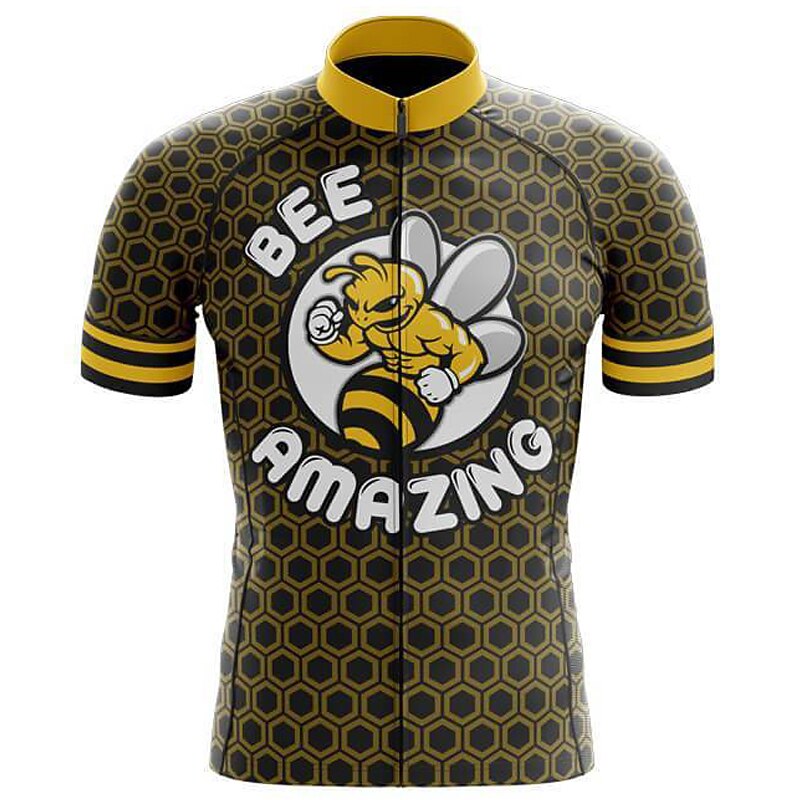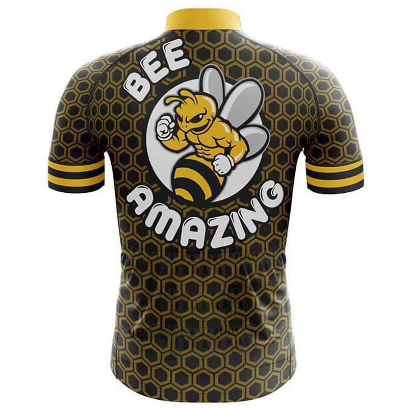 Men's Cycling Jersey Graphic Bee Funny Short Sleeve Bike Jersey Top with 3 Rear Pockets Mountain Bike MTB Road Bike Cycling Quick Dry Reflective Strips Back Pocket Moisture Wicking Sports Black 8
