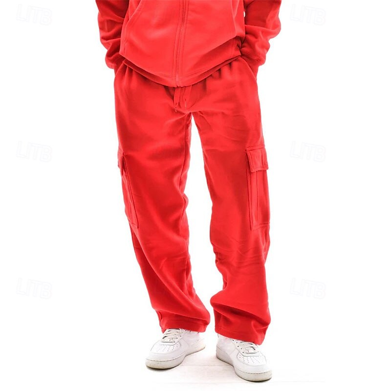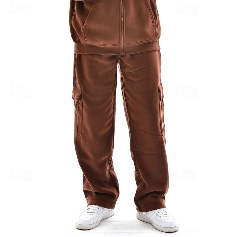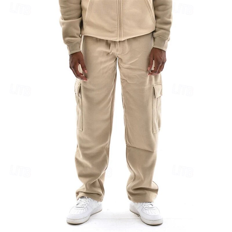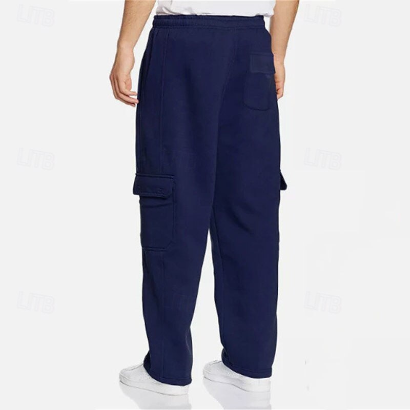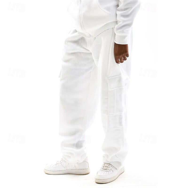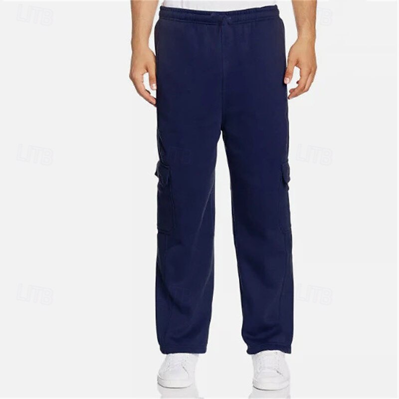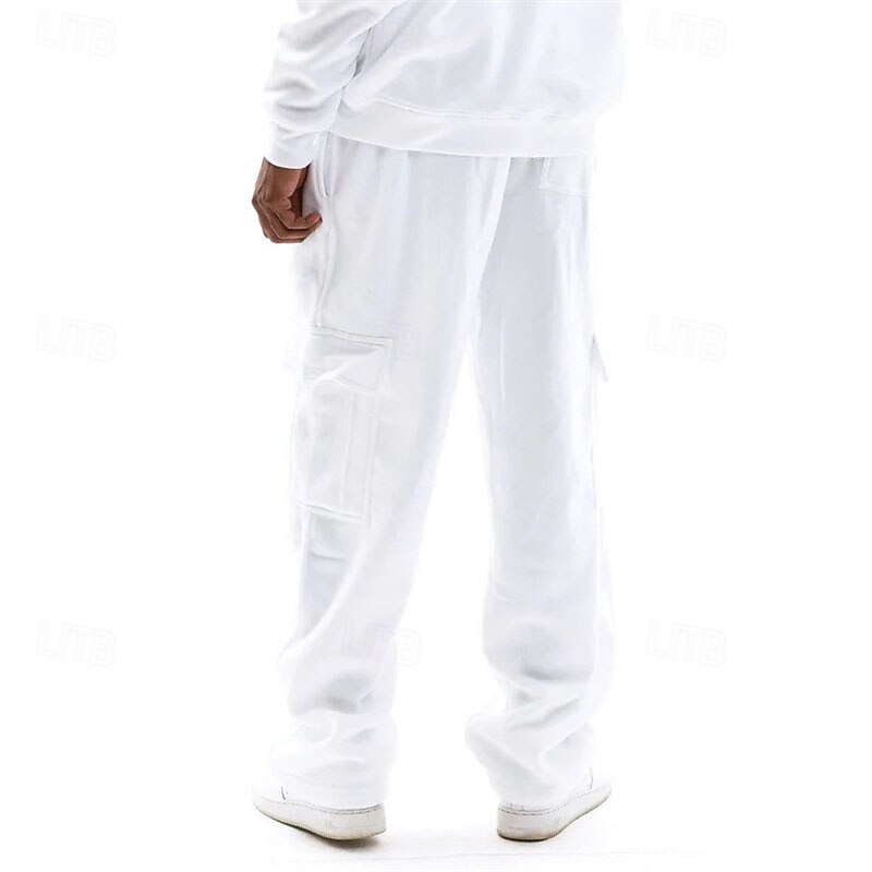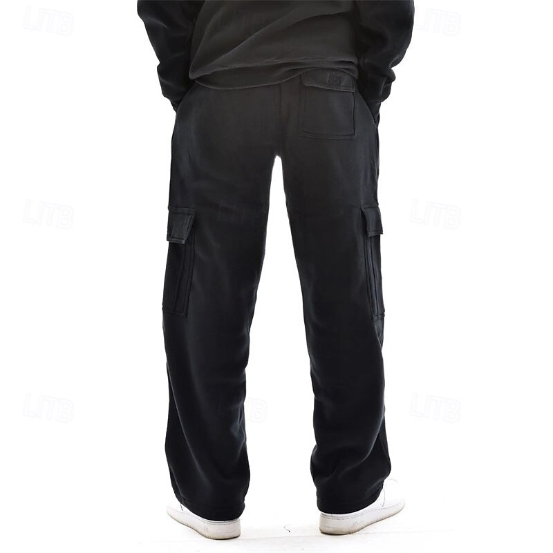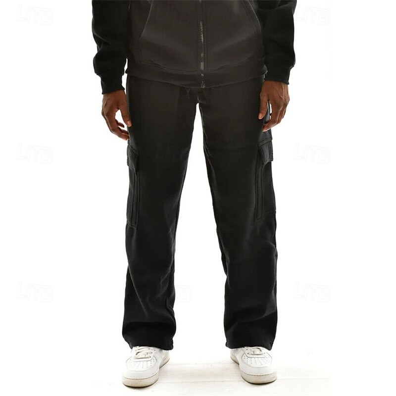 Men's Trousers Cargo Sweatpants Straight Leg Sweatpants Pocket Drawstring Elastic Waist Plain Comfort Warm Sports Outdoor Daily Fashion Casual Black White Micro-elastic 24