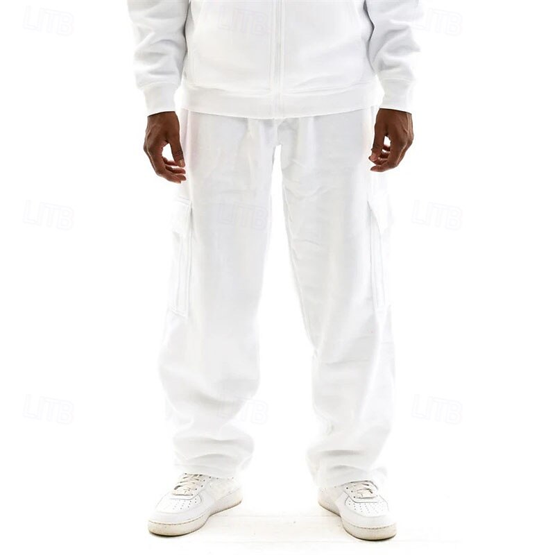 More information about Men's Trousers Cargo Sweatpants Straight Leg Sweatpants Pocket Drawstring Elastic Waist Plain Comfort cozy Sports Outdoor Daily Fashion Casual Black White Micro-elastic