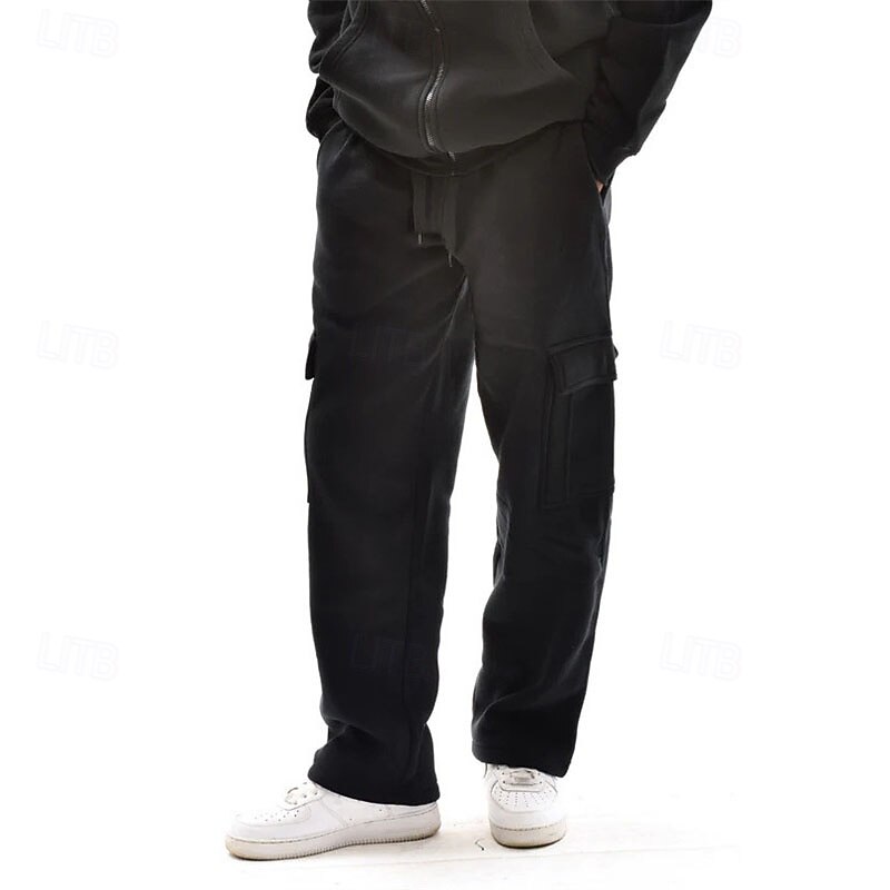 Men's Trousers Cargo Sweatpants Straight Leg Sweatpants Pocket Drawstring Elastic Waist Plain Comfort Warm Sports Outdoor Daily Fashion Casual Black White Micro-elastic 11