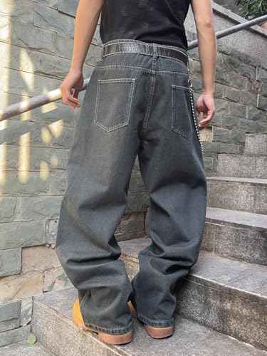 Mens Baggy Jeans Patchwork Y2k Hip Hop Wide Leg Denim Pants Casual Loose Fit Trousers Streetwear