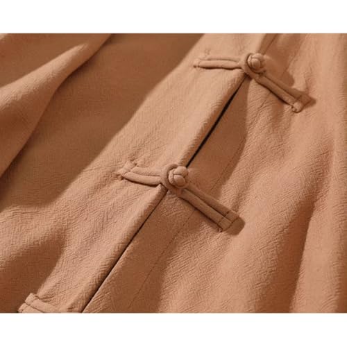 HZCX FASHION Mens Chinese Style Shirt Traditional Frog Button Up Kung Fu Tai Chi Shirts Fake 2 Peice Cotton Linen Zen Robe